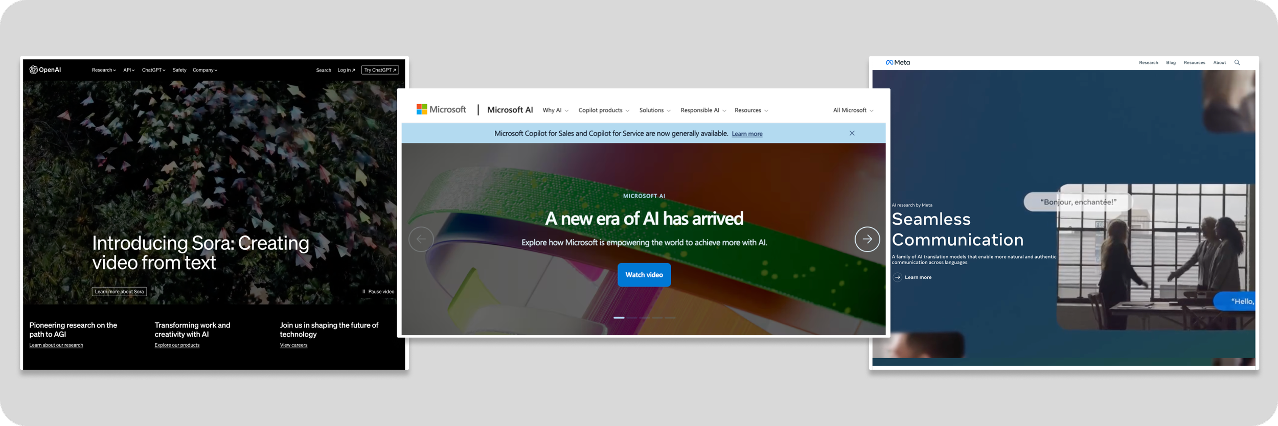 Interviews covered existing AI perceptions and reactions to 3 competitor websites alongside Google’s website.